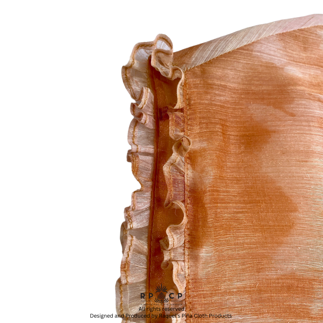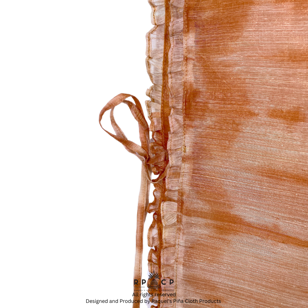 One of its kind Contemporary Filipiniana(side-open with lace) handcrafted using Handloom woven Piña Seda and uniquely tie-dyed in natural Mahogany pigment.
