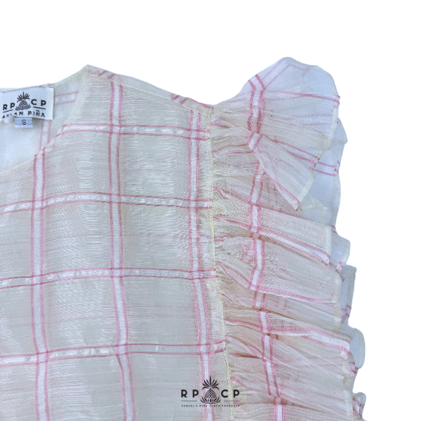 A breezy Poncho crafted from handloom woven piña seda with plaid design. Designed with soft side 3 inches ruffles that flow like waves as part of our Summer Story Series — a light and graceful piece for sunlit days and balmy nights.